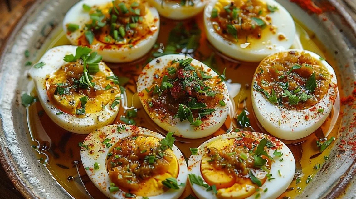Let’s get into how we create these flavorful eggs. The cooking process is straightforward, making it perfect even for novice chefs. Here’s a step-by-step overview: you’ll start with boiling your eggs, then melt some butter and infuse it with onions, garlic, and spices. Finally, you’ll combine everything into a delicious coating for your eggs. It’s as easy as it sounds and rewarding to eat!