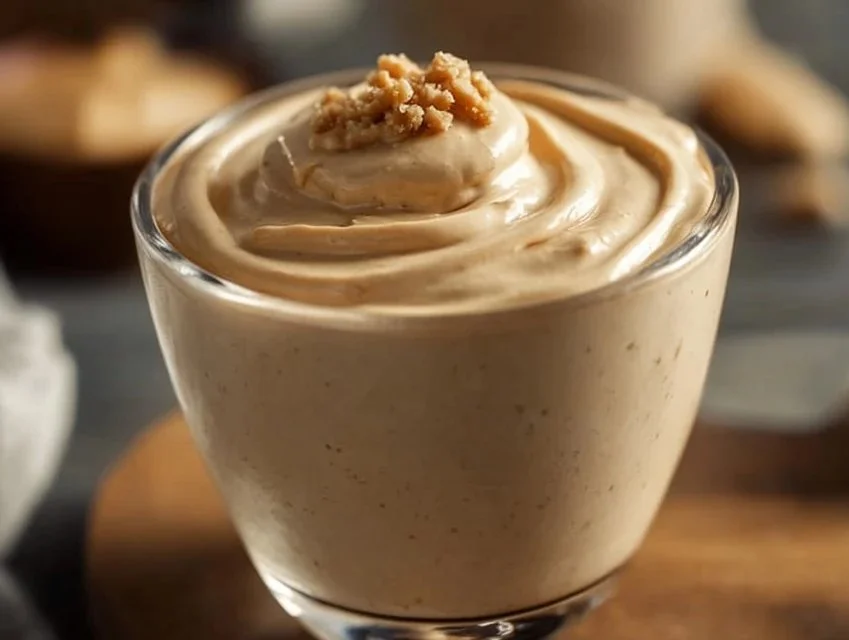 Delicious Cottage Cheese and Peanut Butter Mousse served in a bowl