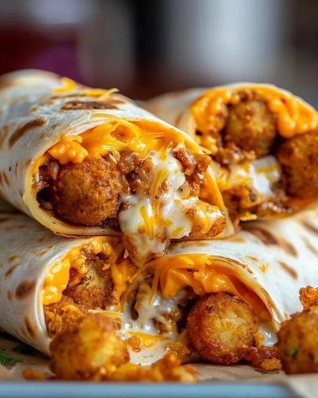 Short overview: warm the oven, mix the filling, assemble burritos, bake until golden, and serve with sour cream and salsa. Expect 10 minutes of hands-on prep if your beef and tater tots are ready, then 15–20 minutes in the oven. The most important steps are packing the filling compactly so the burrito holds together and placing them seam-side down in the dish to avoid unrolling while baking.