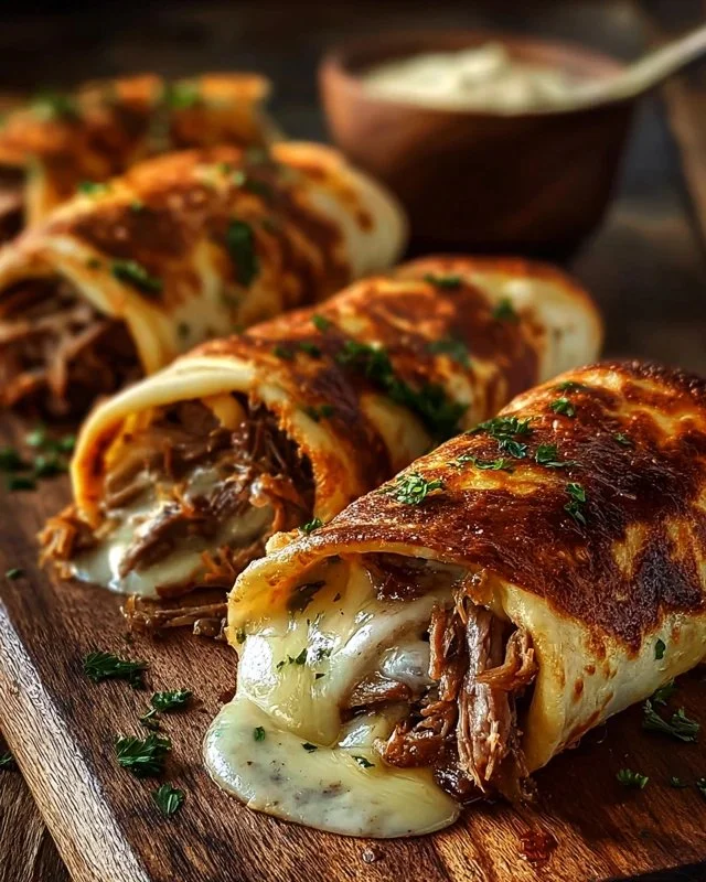 Making these delightful roll-ups is straightforward and incredibly rewarding. You’ll start by preparing your tortillas, followed by layering the roast beef and cheese. The magic happens as you roll and bake them until they’re golden brown and crispy. Meanwhile, you can whip up a simple yet delicious dipping sauce, the au jus. Each step is designed to keep the flavor bursting through while ensuring that your time spent in the kitchen is minimal.