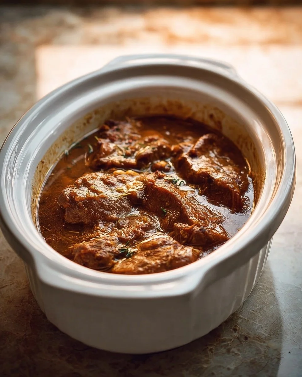 Feel free to get creative! You could introduce mushrooms into the mix for an earthier flavor profile or switch out the thyme for rosemary for a different aromatic touch. For a heartier dish, consider adding potatoes or carrots to the slow cooker so they cook alongside the beef.