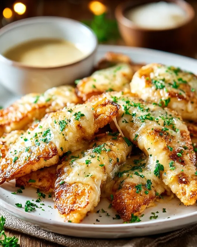 These Garlic Parmesan Chicken Tenders are a fast and crunchy family favorite, baked to perfection and ideal for weeknight dinners or parties.