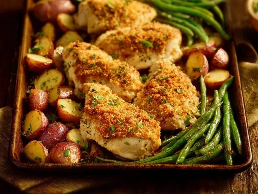 Parmesan Crusted Chicken Sheet Pan Dinner
