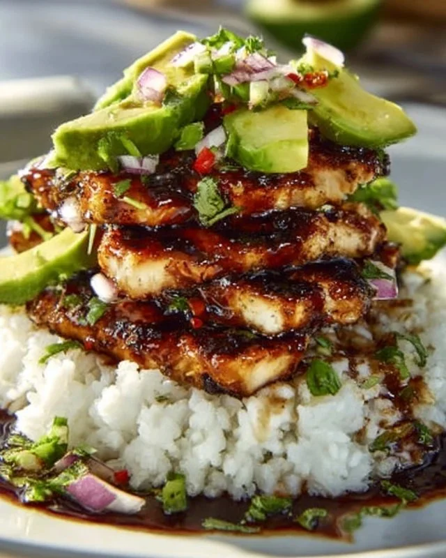 Tangy Honey Lime Chicken & Avocado Rice Stack That Delights